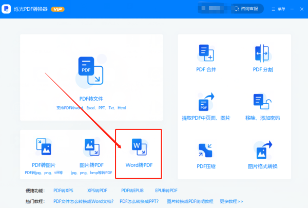 2、我们先打开烁光PDF转换器,在主页中找到转换文件的功能【Word转PDF】,点击进入。