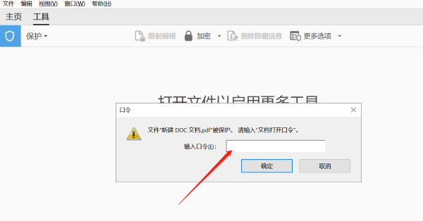 3、点击开始移除后,会弹出提示输入密码窗口,输入PDF的密码后点击确定即可完成PDF解密。