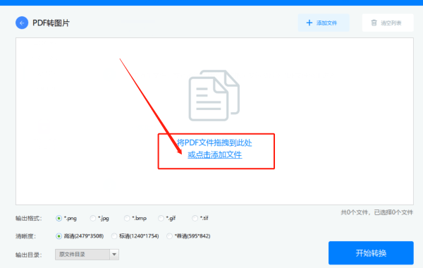 2、点击添加文件,把需要转jpg格式的PDF文件添加进来