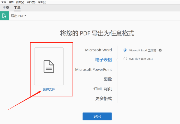 1、打开Adobe Acrobat软件,点击【工具】选项,选择导出PDF功能进入